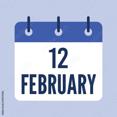 12 February Calendar, Isolated Vector Calendar.