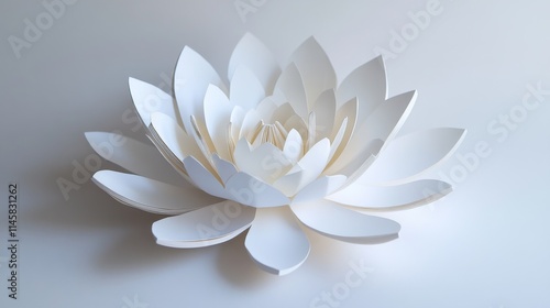 14.A beautifully cut paper lotus flower in white, with delicate, overlapping petals that form a serene and graceful shape. The design includes soft shadows to enhance the 3D look, making it perfect