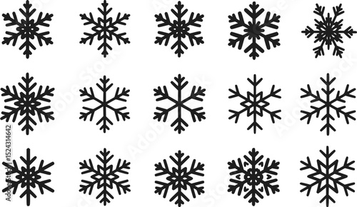 15 Black Snowflake Icons Vector Winter Christmas Snow Holiday