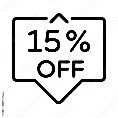 15% off sale label icon, simple black line art with discount