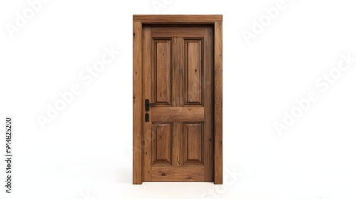 16. **A simple wooden door with a polished finish, isolated on a pristine white background.