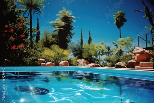 1970s Airbrush Art of a water pool outdoors nature summer.