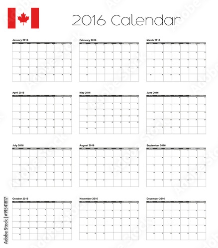 2016 Calendar with the Flag of Canada