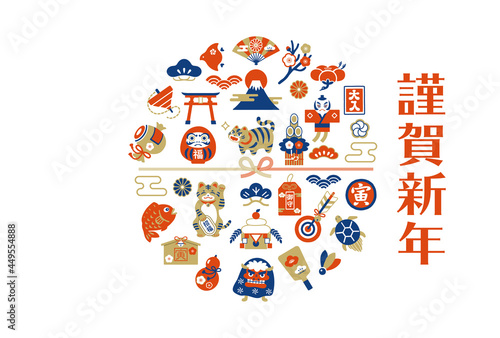 2022年 寅年 縁起物の年賀状デザイン テンプレート