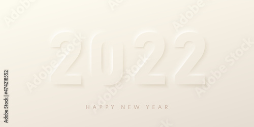 2022 number text illustration with light and shadow on luxury light gold background. Simple emboss unique happy new year 2022 text design. for Brochure template, card, banner, cover. Vector EPS10
