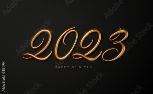 2023 Happy new year golden banner . Dark luxury background with golden metallic numbers date 2023. Vector illustration.