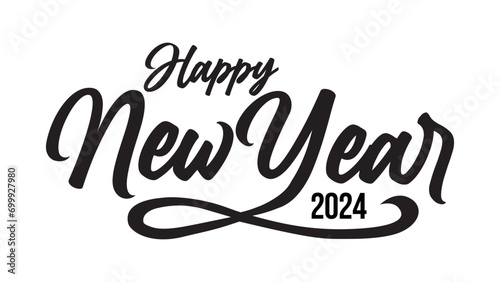 2024 Happy New Year vector greetings card handwriting