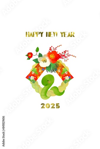 2025年 しめ縄とヘビのかわいい年賀状 巳年