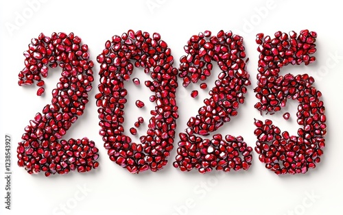 2025 Created from Pomegranate Seeds Arranged in a Pattern Isolated on a White Background