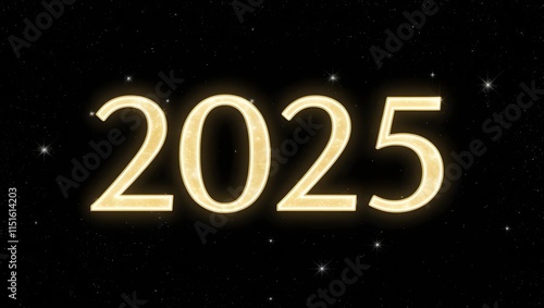 2025 in Luminous Glow-in-the-Dark Style Against a Cosmic Background