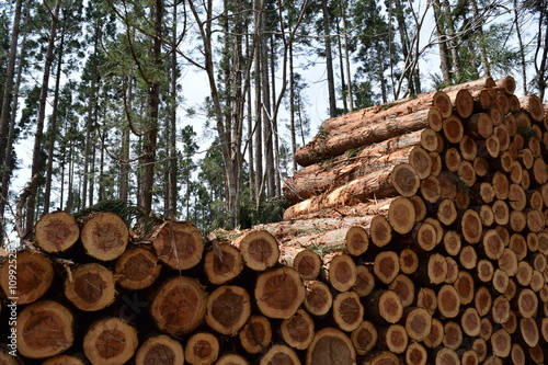 杉の丸太/伐採業者が杉の木を伐採した直後に撮影した丸太の写真です。森の中に積まれた丸太の大きさは、直径約20cm~50cm位です。
