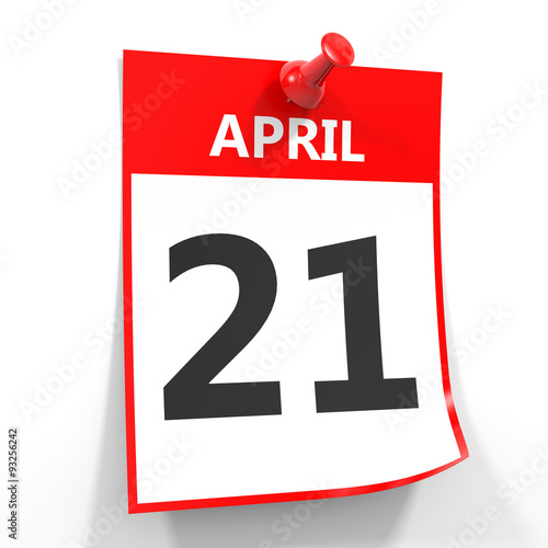 21 april calendar sheet with red pin.