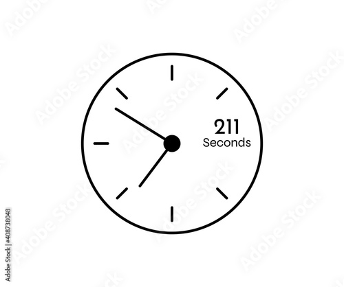 211 seconds Countdown modern Timer icon. Stopwatch and time measurement image isolated on white background