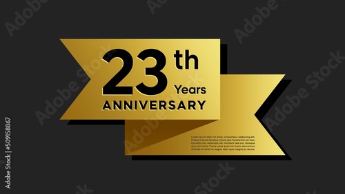 23 years anniversary logo with golden ribbon for booklet, leaflet, magazine, brochure poster, banner, web, invitation or greeting card. Vector illustrations.