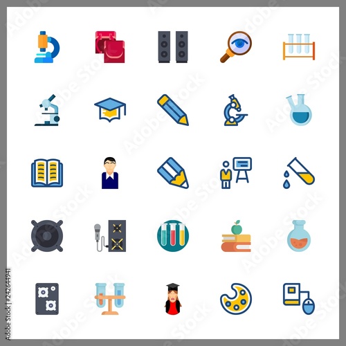 25 study icon. Vector illustration study set. test tube and microscope icons for study works