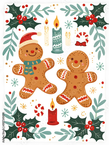 2D illustrated New Year card in a cute graphic style
