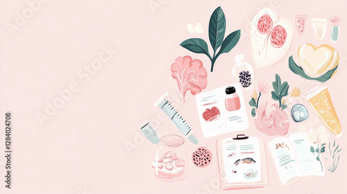 2D illustration of Healthy lifestyle concept with food, plants, and medical elements