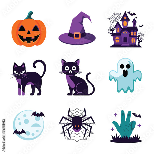 2d vector illustration Halloween t shirt icon design items ghost character Candles in carved pumpkin