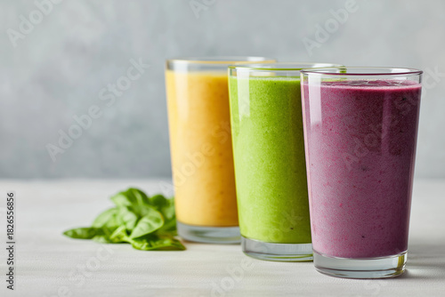 3色の健康スムージーを並べたクリーン背景|栄養・美容・ヘルシー情報のイメージに最適