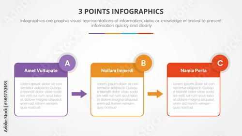 3 points or stages infographic concept with right direction square box timeline arrow for slide presentation