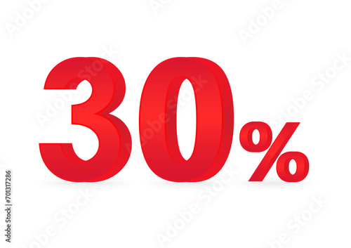 30% or 30 Percent Off Sale Discount. 30% for Banner, Poster or Advertising. Vector Illustration.