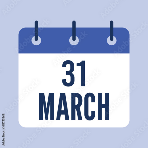 31 March Calendar, Isolated Vector Calendar.