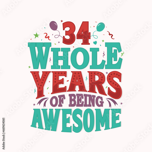 34 Whole Years Of Being Awesome. 34th anniversary lettering design vector.