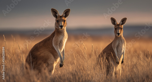 341-Kangaroos in the Australian outback, posing for the camera.