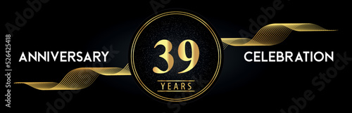 39 Years Anniversary Celebration with Golden Waves and Circle Frames on Luxury Background. Premium Design for banner, poster, graduation, weddings, happy birthday, greetings card and, jubilee.