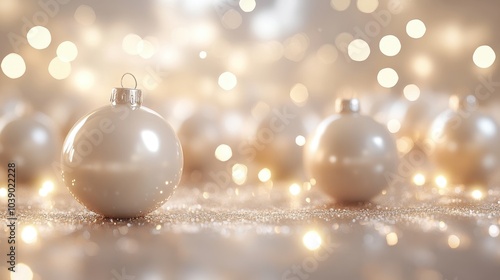 3D abstract Christmas light background with beige Christmas ornaments