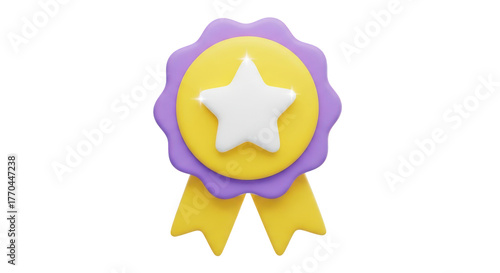 3D Award Ribbon with White Star and Yellow Ribbons isolated on a transparent background medal
