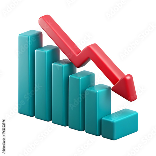 3d bar chart showing a downward trend isolated on transparent background