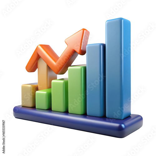 3d bar chart with upward arrow isolated on transparent background