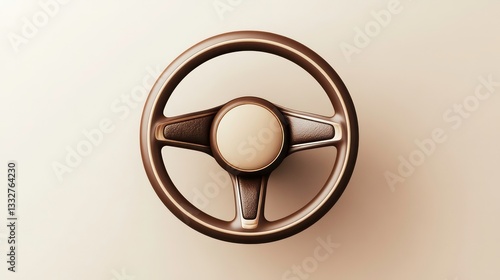 3D beige and brown steering wheel icon with a sleek, modern design. This 3D illustration features clean lines and a minimalistic style