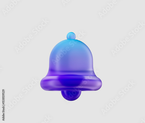 3D Bell icon in blue and purple tones, symbolizing notifications, alerts or reminders. 3d illustration