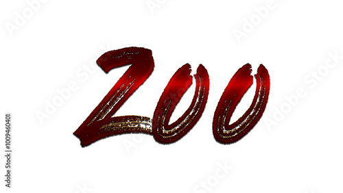 3D blood red word design of Zoo on white background.