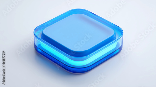 3D blue settings icon, glowing edges, smooth texture, minimalist design, floating on white background