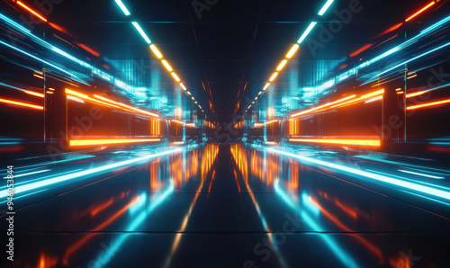 3D Blurred background neon lines vanishing point abstract graphic