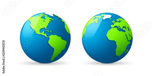 3d cartoon blue and green earth icon, white background, simple design, high contrast colors,