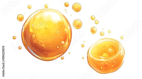 3d cartoon Cooking Oil, Honey drop with air bubbles isolated. Icon of drop of oil or honey, white background