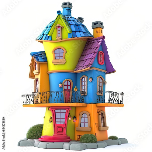 3D cartoon funny fairytale house isolated on a white background. Illustration for children's room decor, wallpaper. Print on fabric, paper, clothing