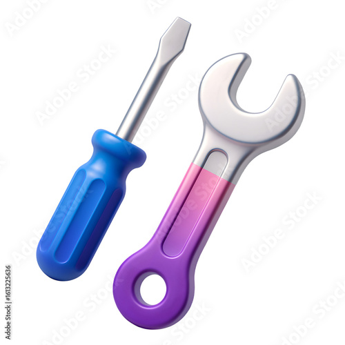 3D Cartoon Tools Screwdriver and Wrench Transparent Background