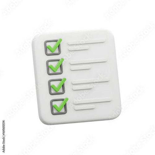3d checklist with green checkmarks on a transparent background, isolated on transparent background