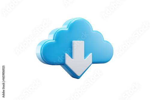 3D cloud with a downward arrow, representing data download