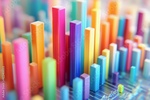 3D Colorful Bars Representing Data Visualization in Abstract Design