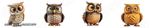 3D cute happy cartoon owl, isolated on white background