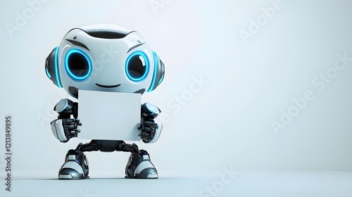 3D cute Robot holding a empty sign on gray background