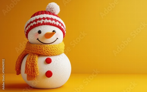 3D cute Snowman on bright yellow background