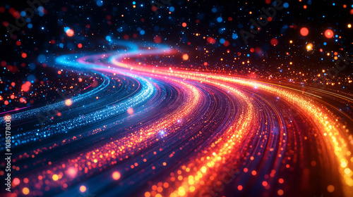3D dynamic abstract neon light streak trail technology virtual reality background. cyberpunk futuristic fashion vibrant line modern colorful rainbow glow glossy striking wallpaper