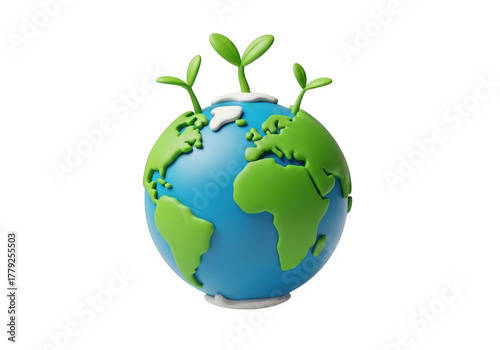 3d earth with growing plants isolated on transparent background